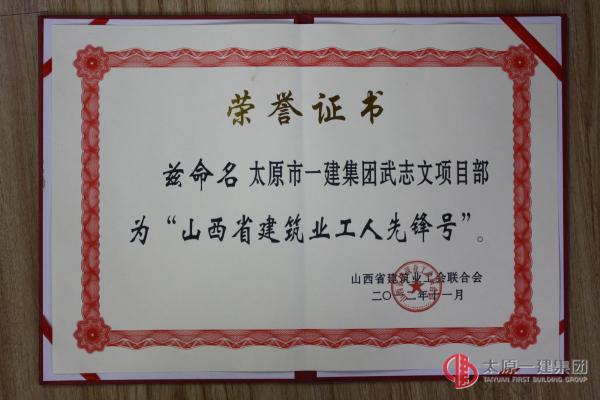 山西省建筑業(yè)工人先鋒號(hào)之武志文項(xiàng)目部