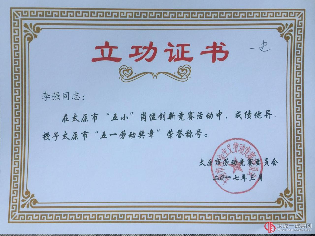 發(fā)明人李強(qiáng)榮獲太原市五一勞動獎?wù)?/p>