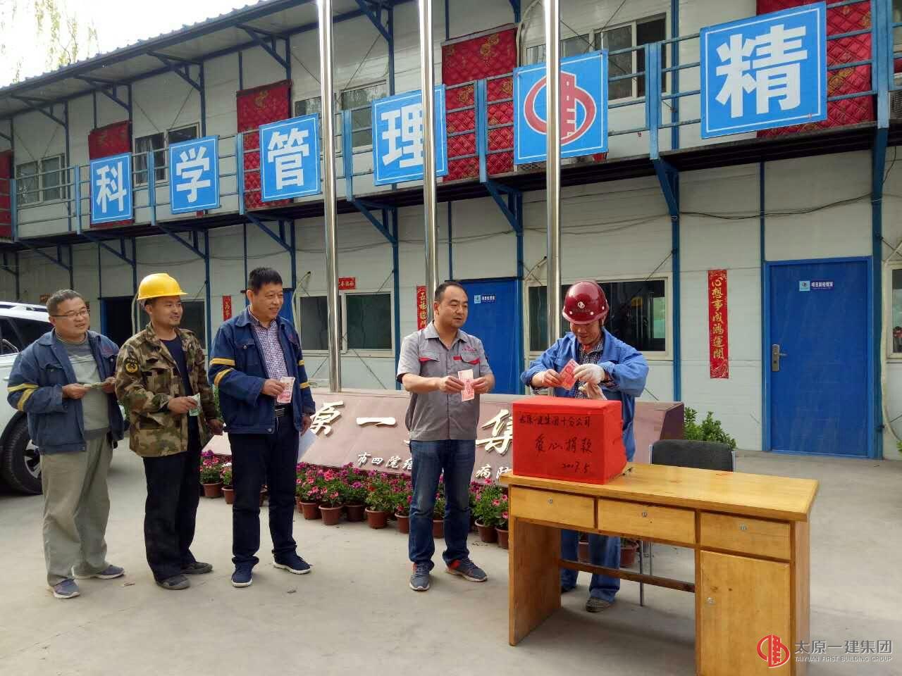 5月12日,太原一建集團(tuán)舉行第十一個“愛心日”活動。儀式上,集團(tuán)公司工會主席李瑞琪代表愛心基金會,向全體員工匯報了2007—2016年愛心基金會的收支情況,并向十年來奉獻(xiàn)愛心的所有人士表達(dá)了最誠摯的感謝。隨后機(jī)關(guān)各部室及駐地單位員工紛紛將自己的一份愛心投入捐款箱。各基層單位自行組織了本次愛心捐款活動。集團(tuán)公司“愛心日”活動受到員工的積極響應(yīng),本次活動共1119人參與,獻(xiàn)出愛心款103450元。