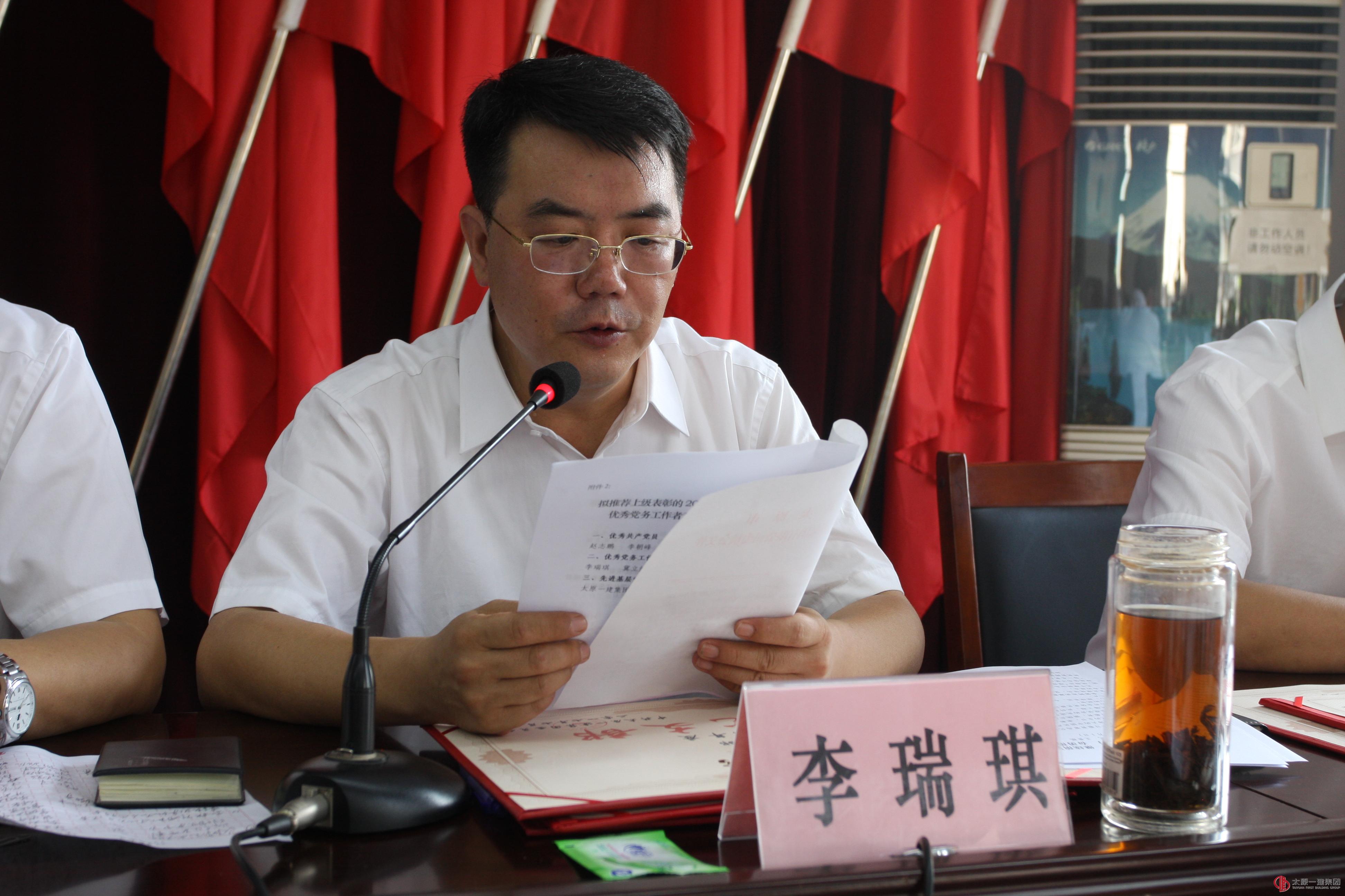 李瑞琪宣讀《中共太原一建集團委員會關于表彰優(yōu)秀共產(chǎn)黨員 優(yōu)秀黨務工作者 先進黨支部 星級黨員先鋒工程的決定》。決定指出,集團公司黨委決定對劉澤華等48名共產(chǎn)黨員、李榮安等6名黨務工作者、六分公司晉中市城區(qū)公共租賃住房三標段項目等5個星級黨員先鋒工程、一分公司黨支部等9個基層黨組織予以表彰,分別授予“優(yōu)秀共產(chǎn)黨員”“優(yōu)秀黨務工作者”“星級黨員先鋒工程”和“先進黨支部”稱號,授予直屬八分公司“黨員突擊隊”稱號。