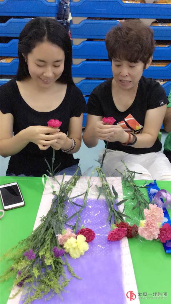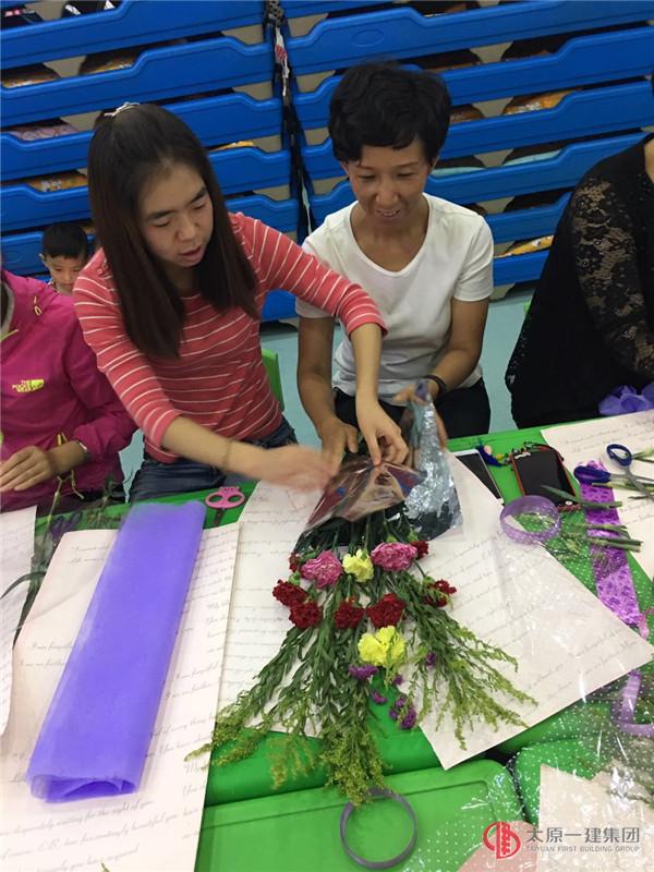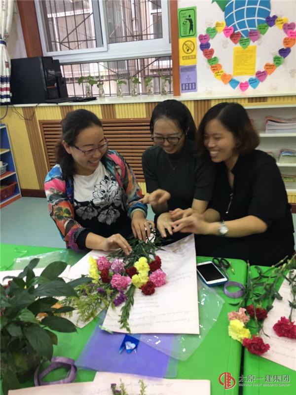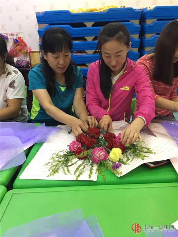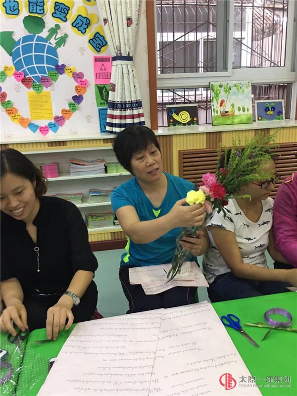 每位老師利用手中的剪刀、彩色的包裝紙將一枝枝嬌艷欲滴的花朵錯落有致的擺放其中,用自己的匠心獨具、奇思妙想讓手中的花束變成了藝術品!只見你的優(yōu)雅自然,我的高低錯落;你的清雅流暢,我的高冷時尚。你的花是簡單素雅一片粉,我的花是姹紫嫣紅美盈盈……,這動人心弦的一幕盡現(xiàn)"人在花中笑,花在人旁俏"的無尚景致!