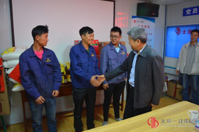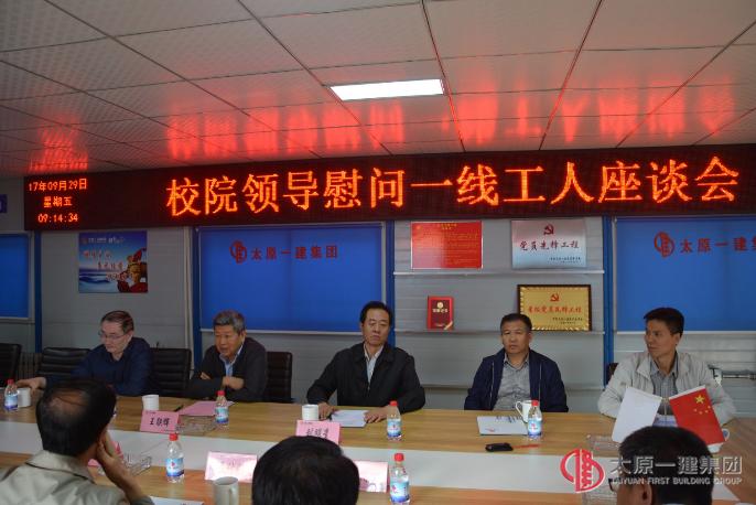 9月29日上午9時(shí),山西行政學(xué)院(山西省委黨校)校長(zhǎng)王聯(lián)輝,副校長(zhǎng)劉明星,行政處處長(zhǎng)龐云平,黨校項(xiàng)目負(fù)責(zé)人李新禎親臨十三分公司省委黨校項(xiàng)目部現(xiàn)場(chǎng)進(jìn)行慰問(wèn)。集團(tuán)公司工會(huì)主席李瑞祺,集團(tuán)公司總經(jīng)理助理趙峰,十三分公司黨支部書(shū)記、經(jīng)理孟計(jì)根、監(jiān)理單位代表、項(xiàng)目部全體管理人員、勞務(wù)代表及專業(yè)分包單位代表共同參加,活動(dòng)由黨校領(lǐng)導(dǎo)龐云平主持。