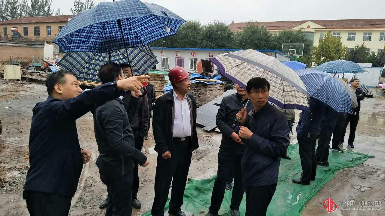 在國(guó)慶、中秋雙節(jié)期間,全國(guó)人民喜迎黨的十九大之際。10月3日上午,屯留縣委書記馬先明、教育局楊局長(zhǎng)、城建局張局長(zhǎng)一行十五人冒雨蒞臨直屬三分公司承建的屯留二中新建教學(xué)樓工地進(jìn)行現(xiàn)場(chǎng)視察指導(dǎo)工作。