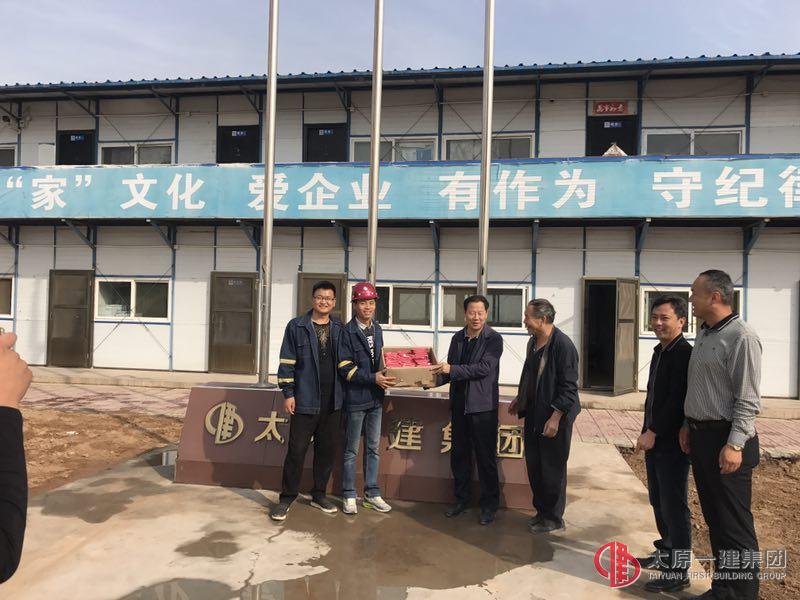 9月30日,在國慶、中秋兩節(jié)到來之際,集團(tuán)公司李世雄總經(jīng)理帶隊(duì),陳斌助理等第一慰問組赴經(jīng)營公司承建的山西華騰燃?xì)庠O(shè)備工業(yè)園項(xiàng)目部,對項(xiàng)目部及勞務(wù)隊(duì)進(jìn)行了兩節(jié)慰問和祝福。