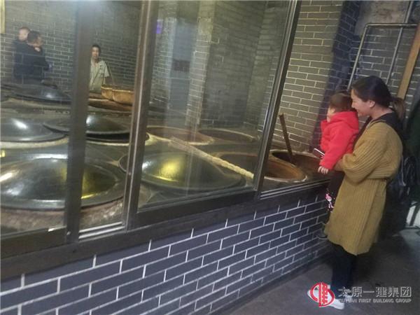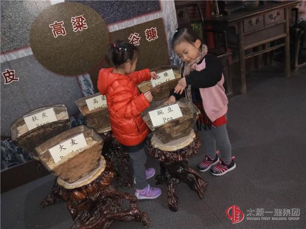 臨近仿古建筑美和居醋坊,迎面而來的是既酸又香的老陳醋氣味。進入古色古香的美和居醋坊,猶如來到了500年前的老陳醋作坊,老醋芳香、撲鼻沁心,醋味十足,難以忘懷。作坊內(nèi)“蒸、酵、熏、淋、曬”的老陳醋制作工藝和步驟一覽無余,小朋友們都被眼前的醋坊吸引,那些又高又深的醋缸,古色古香的建筑,綿甜酸香的陳醋味道,讓人流連忘返。你摸摸手推車,我捧捧做醋的糧食,他聞聞醋缸里的十年陳釀,再使勁推推磨盤。。。孩子們玩的不亦樂乎,家長們看的停不下來!