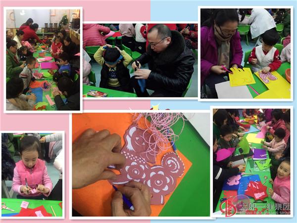 這一天的幼兒園仿佛變身為歡樂海洋,每個(gè)班都是主題樂園。大紅的燈籠,飄揚(yáng)的彩旗,閃爍的串燈,喜慶的春字福字。。。老師們?cè)缫褜@內(nèi)布置一新,等待孩子和家長(zhǎng)們的到來!孩子們認(rèn)真可愛的節(jié)目,與家長(zhǎng)們?nèi)の稓g樂的互動(dòng)親子游戲,開心彌漫空氣,笑容洋溢滿園!丫丫班制作的紅紅火火團(tuán)圓扇,苗苗班精心描繪的扣子年畫,豆豆班年味十足的蒸花饃,檸檬班寓意滿滿的吉祥彩旗,草莓班造型各異的燈籠,香蕉班筆墨書香的福字,劍橋班垂涎欲滴的多彩壽司,牛津班巧手飛舞剪窗花,哈佛班別致傳統(tǒng)的拓印,一班一活動(dòng)、一班一內(nèi)容。幼兒園還特別為孩子們準(zhǔn)備了祝福甜點(diǎn),甜在寶貝們的心里,暖在家長(zhǎng)和老師的心上??粗⒆觽儩M足的笑臉,我們甚感欣慰。一個(gè)別致又喜慶的新年聯(lián)歡會(huì)就在歡聲笑語中度過。聯(lián)歡會(huì)結(jié)束后,幼兒園組織全體教職員工去寬銀幕電影院觀看電影《芳華》,在休閑中放松,在感受中愉悅,一起度過假期前的最后一天。