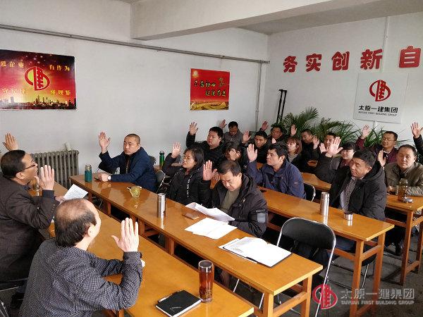 1月17日七分公司召開2017年度股東會議,會議應到30人,實到27人,3人委托。會議由授權委托人郭建新主持。會上全體股東聽取了集團公司2017年度工作草案,并逐項全票通過了決議草案。郭建新按照新時代、新思想、新狀態(tài)的要求傳達了集團公司預備股東會議主要內容,向各位股東宣布了當前分公司經營狀況,明確了股東的責任和義務。他表示七分公司要團結在一起共渡難關,在2018年中提信心,提產值,提任務,保質量,保安全,使分公司的股東、職工獲得更多的收獲,獲得更大的幸福感。最后郭建新帶領大家共同學習了十九大關于八個明確和十四個堅持的知識。