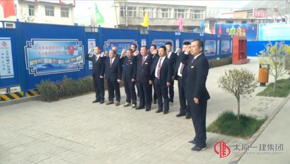 天空中,紅色的國(guó)旗、白色的司旗、綠色的安全旗三面旗子迎風(fēng)飄揚(yáng),音樂(lè)響起時(shí)大家齊聲唱響司歌,接著在三面旗子下莊嚴(yán)宣誓。在這個(gè)特殊的日子里,集團(tuán)公司董事長(zhǎng)王貴聰帶隊(duì),一行八人為我分公司授予“家”文化牌,此時(shí)此刻的大家都為自己是一建員工而感到驕傲和自豪。