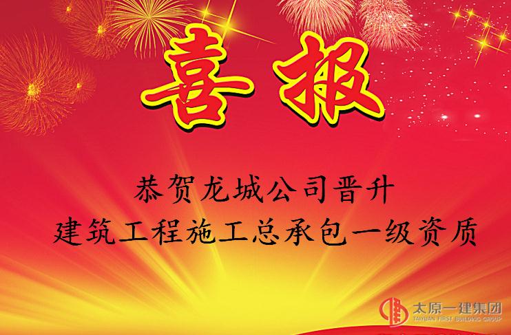 2018年4月18日是一個(gè)普通的日子,但對(duì)于我們太原一建集團(tuán)來(lái)說(shuō),是一個(gè)喜慶的日子,對(duì)于山西龍城建筑路橋有限公司所有員工來(lái)說(shuō),更是一個(gè)令人激動(dòng)、令人難也忘懷的日子。龍城公司被國(guó)家住房和城鄉(xiāng)建設(shè)部評(píng)審?fù)ㄟ^(guò)了“建筑工程施工總承包壹級(jí)資質(zhì)。