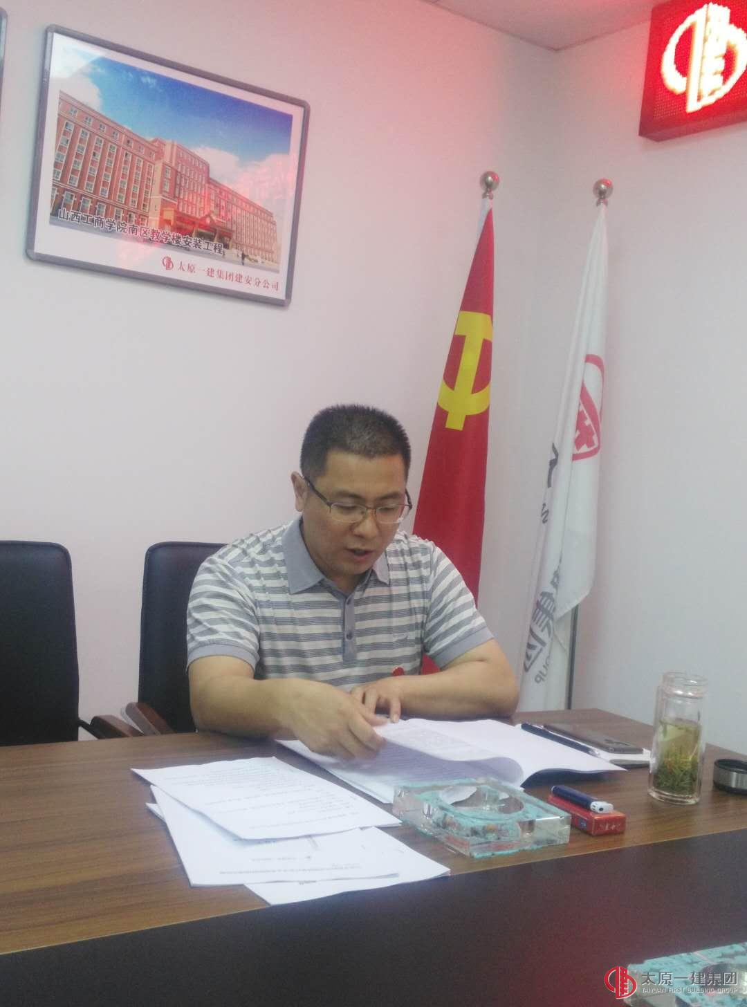 會上,分公司黨支部書記李偉帶領大家學習《黨章》第七章黨的紀律、第八章黨的紀律檢查機關;深入學習習近平新時代中國特色社會主義思想的鮮明理論品格;專題學習黨的紀律建設的內(nèi)涵和外延。支部副書記高龍就十九大黨章的新變化、新特點進行分析,并結(jié)合分公司上半年生產(chǎn)經(jīng)營狀況對施工生產(chǎn)情況進行通報,隨后全體黨員結(jié)合自身實際情況,開展批評與自我批評,深刻剖析,并結(jié)合近期工作做思想?yún)R報以及對不足之處提出整改措施。