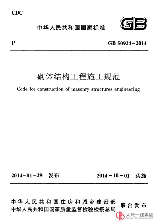 砌體結(jié)構(gòu)工程施工規(guī)范 GB50924-2014
