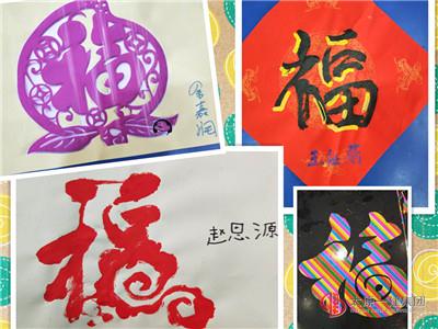 “揮豪潑墨迎福來”讓家長和寶貝們共同沉浸在筆精墨妙的世界中,將寫、剪、粘、印多種形式與水彩顏料、糧食、紐扣等材料相結(jié)合,用濃墨重彩的一筆描繪對生活最美的期待——愿“福”如東海、“福”星高照!
