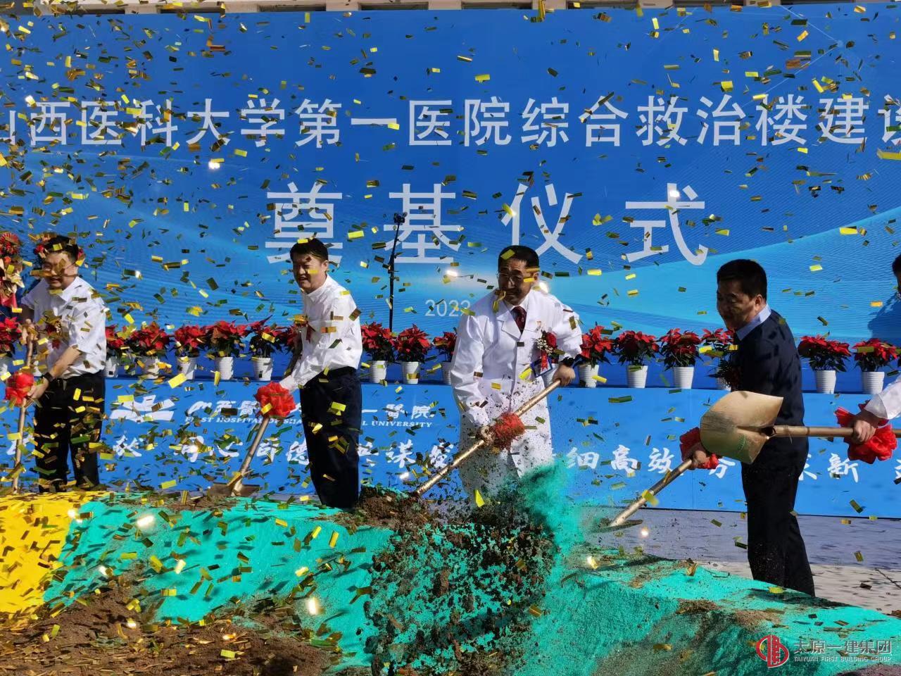 山西省衛(wèi)健委副主任張波宣布山西醫(yī)科大學第一醫(yī)院綜合救治樓建設(shè)項目于2022年9月12日正式奠基開工建設(shè)!開工奠基儀式一片熱烈氛圍,各位領(lǐng)導(dǎo)同擎金鍬,揚土培基。
