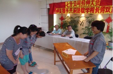 5月25日下午,七分公司召開“名師帶高徒”主題活動會議,王斌副總經(jīng)理及七分公司全體人員參與了這次會議,分公司副經(jīng)理弓馬威主持會議。本次活動會議通過拜師儀式、簽訂承諾書共成立了七對師徒,所有師、徒都對今后的工作作出了承諾,確定了努力發(fā)展的方向,為集團(tuán)公司百年發(fā)展計(jì)劃貢獻(xiàn)自己的力量。集團(tuán)公司副總經(jīng)理王斌發(fā)表講話,要求徒弟繼承和發(fā)揚(yáng)師傅的優(yōu)良品質(zhì),提高個人素質(zhì)。號召師傅成為名師,徒弟成為名徒。