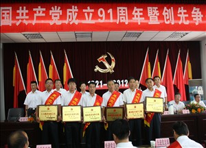 在全黨全國人民歡慶蛟龍下海、神九上天的時刻,迎來了中國共產(chǎn)黨成立91周年華誕之日,為紀念這神圣而偉大的節(jié)日,集團公司黨委隆重召開紀念中國共產(chǎn)黨成立91周年暨創(chuàng)先爭優(yōu)表彰大會。集團公司黨員領導干部、各黨支部領導、先進集體代表、優(yōu)秀共產(chǎn)黨員、各團支部書記共計110余人歡聚一堂,共同慶祝黨的生日。市住建委及市建工集團領導蒞臨大會并講了話。 上午9時,大會在雄壯的《國歌》聲中拉開序幕。會上,黨委書記王貴聰作了紀念建黨91周年專題講話,回顧了黨的91年的豐功偉績,總結了一年來創(chuàng)先爭優(yōu)工作,提出了當前和下半年的主要工作任務,要求全體黨員一定要繼承和發(fā)揚黨的優(yōu)良傳統(tǒng)和作風,牢記黨的宗旨,以更加奮發(fā)有為的精神狀態(tài),求真務實的工作作風,團結和帶領全公司廣大職工,埋頭苦干,扎實工作,與時俱進,奮力拼搏,為實現(xiàn)集團公司三年發(fā)展規(guī)劃,為企業(yè)跨越發(fā)展,為集團公司員工更有尊嚴而努力奮斗,以優(yōu)異成績迎接黨的十八大! 大會表彰了一年來在創(chuàng)先爭優(yōu)活動中涌現(xiàn)出的先進集體和優(yōu)秀個人。黨委委員王斌宣讀了《表彰決定》,黨委領導分別為8個先進黨支部、6個星級黨員先鋒工程、50名優(yōu)秀共產(chǎn)黨員、6名優(yōu)秀共產(chǎn)黨員標兵,9名優(yōu)秀黨務工作者頒發(fā)了獎牌或證書。優(yōu)秀黨員代表十五分公司主任工程師張曉鵬,優(yōu)秀黨務工作者代表十六分公司黨支部副書記侯靜怡分別作了大會表態(tài)發(fā)言。 大會向全體黨員發(fā)出倡議。號召廣大黨員:要向優(yōu)秀看齊,爭做愛崗敬業(yè)的標兵;向優(yōu)秀共產(chǎn)黨員“五帶頭”標準看齊,永葆共產(chǎn)黨員先進性;掀起比學趕幫熱潮,爭創(chuàng)一流業(yè)績。 大會由黨委副書記宋雙玉主持,他要求各級組織,要結合實際認真貫徹落實本次會議精神,把創(chuàng)先爭優(yōu)活動形成的先進思想、先進作風、先進精神發(fā)揚光大;把上級組織和黨委的要求落實到實際工作中;把黨日活動激發(fā)出的熱情干勁和井岡山精神貫徹弘揚到企業(yè)各項工作之中,以加快發(fā)展、重樹形象、增加積累、增強實力、造福員工、回報社會的優(yōu)異成績迎接黨的十八大勝利召開! 大會在莊嚴的《國際歌》聲中落幕。