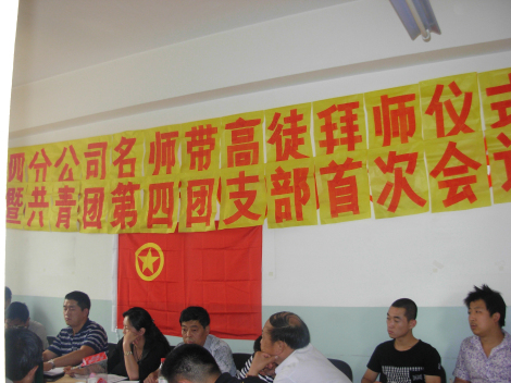 5月28日,四分公司舉行拜師儀式暨團(tuán)支部首次會(huì)議,青年團(tuán)員、師徒結(jié)對(duì)人員、分公司機(jī)關(guān)全體人員、工人代表,集團(tuán)公司監(jiān)事會(huì)主席、人力資源部部長(zhǎng)范立強(qiáng)和團(tuán)委副書記徐婷參加了會(huì)議。首先進(jìn)行的是第四團(tuán)支部首次會(huì)議。會(huì)上,副書記張建民宣讀了集團(tuán)公司關(guān)于調(diào)整基層團(tuán)組織機(jī)構(gòu)的通知和關(guān)于張?chǎng)蔚韧救蚊耐ㄖ獌蓚€(gè)文件精神。團(tuán)員在團(tuán)支部書記謝晉的帶領(lǐng)下重溫了入團(tuán)誓詞。第四團(tuán)支部書記謝晉組織大家學(xué)習(xí)了集團(tuán)公司并一建團(tuán)發(fā)[2012]1號(hào)、3號(hào)文件精神和胡錦濤總書記在紀(jì)念中國共產(chǎn)主義青年團(tuán)成立90周年大會(huì)上的講話。宣布了團(tuán)支部組織委員和宣傳委員名單。對(duì)第四團(tuán)支部2012年工作做了安排。副書記張建民代表分公司黨支部做了加強(qiáng)青年工作,發(fā)揮共青團(tuán)作用的講話。隨后,進(jìn)行了名師帶高徒拜師儀式。會(huì)上,副經(jīng)理苗強(qiáng)與大家共同學(xué)習(xí)了集團(tuán)公司關(guān)于開展名師帶高徒活動(dòng)的安排文件精神,副經(jīng)理閻謙宣讀了分公司關(guān)于名師帶高徒結(jié)對(duì)子名單決定的通知。副經(jīng)理張建民宣讀了名師帶高徒活動(dòng)承諾書,六位師傅分別于九位徒弟在承諾書上簽了字,并進(jìn)行了徒弟給師傅三鞠躬的拜師儀式。師傅代表李玉貴、徒弟代表徐潔分別作了表態(tài)發(fā)言。集團(tuán)公司監(jiān)事會(huì)主席、人力資源部部長(zhǎng)范立強(qiáng)和團(tuán)委副書記徐婷講了話,分別對(duì)團(tuán)的工作和結(jié)成對(duì)子的師傅、徒弟提出希望和要求。分公司經(jīng)理王東升分別對(duì)青年、團(tuán)支部、結(jié)成對(duì)子的師徒提出希望和要求。會(huì)議由副書記、副經(jīng)理張建民主持。