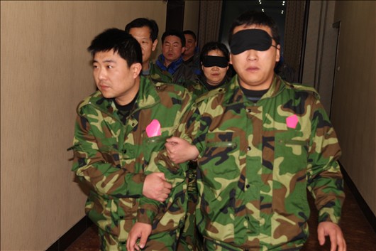 孤島求生”這個(gè)項(xiàng)目是要求人只知道自己的任務(wù)而不知道其它島上的任務(wù),這個(gè)項(xiàng)目主要是考驗(yàn)一個(gè)團(tuán)隊(duì)在接到任務(wù)后高、中、基層員工的相互配合與溝通。盲人(是基層員工)、啞人(中層領(lǐng)導(dǎo))、健全人(高級(jí)領(lǐng)導(dǎo))、在訓(xùn)練的過(guò)程中,隊(duì)員們都為團(tuán)隊(duì)完成訓(xùn)練科目各自發(fā)揮了重要作用,但是如果沒(méi)有統(tǒng)一的指揮,團(tuán)隊(duì)就會(huì)出現(xiàn)混亂,訓(xùn)練科目也難以成功完成。