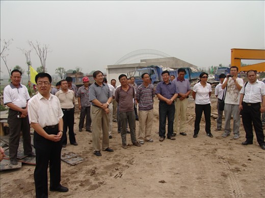 8月15日上午在汾河南延八標段施工現(xiàn)場,由上級領(lǐng)導住建委汾河管理委員會主任張建民、副主任牛凱以及集團公司總經(jīng)理王貴聰、常務(wù)副總經(jīng)理張岐泰、生產(chǎn)部門負責人、四個基層單位(五處、十一處、十六處、建安處)行政負責人、現(xiàn)場項目經(jīng)理參加了汾河管理用房封頂儀式。會上,首先由工程管理部部長李隆做了總結(jié)發(fā)言:隨著中博會召開時間的日益臨近,汾河南延工程進度已迫在眉節(jié),從臨危受命承接這些工程以來,集團公司領(lǐng)導高度重視,提出“抓安全、保質(zhì)量、搶進度,確保按時完成”,隨即組織精兵強將派駐現(xiàn)場,并于關(guān)鍵時刻7月18日在施工現(xiàn)場組織了“迎中博、大戰(zhàn)三十天動員會”。8月15日隨著汾河管理用房的順利封頂,為全面完成各項施工任務(wù)吹響了沖鋒號,全體施工人員迎暴雨、戰(zhàn)酷暑,決心再接再厲,為“中博會”的順利召開貢獻力量。上級領(lǐng)導住建委汾河管理委員會副主任牛凱對我們當前的工作給予了充分肯定,這一時刻,標志著本工程的實施取得了階段性的成績,讓我們?nèi)w人員振奮精神,以今天順利封頂為契機,向全面完工而進軍。會議由集團公司工程管理部部長李隆主持。