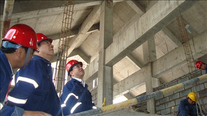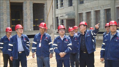 4月30日,集團公司高管層全體領(lǐng)導(dǎo)在董事長、總經(jīng)理王貴聰率領(lǐng)下頭戴安全帽,身著企業(yè)工裝來到九分公司承建的汾東文體中心工地,對節(jié)日期間堅守崗位辛勤工作的全體作業(yè)人員、職工進(jìn)行了看望和現(xiàn)場調(diào)研。進(jìn)入現(xiàn)場后領(lǐng)導(dǎo)們直奔作業(yè)區(qū),并步入正在施工的樓上對工程質(zhì)量、安全防護(hù)措施、現(xiàn)場文明施工情況進(jìn)行了細(xì)致檢查,然后領(lǐng)導(dǎo)們又到生活區(qū)對作業(yè)人員的食宿情況進(jìn)行了檢查,王總經(jīng)理與正在吃午飯的工人們進(jìn)行了親切交談和情況調(diào)研。到辦公區(qū)后,項目經(jīng)理路立科和分公司經(jīng)理張岐泰先后分別做了情況匯報,領(lǐng)導(dǎo)們聽取匯報后,王總經(jīng)理作了熱情洋溢的重要講話,首先,認(rèn)為從施工現(xiàn)場建設(shè)到克服施工工藝的難度,體現(xiàn)了九分公司的實力和能力,并對九分公司的整體工作情況表示滿意,同時提出了三點要求和希望:1、保持持續(xù)、健康、積極的發(fā)展態(tài)勢,通過努力進(jìn)一步增強實力,在經(jīng)營的項目上要選擇優(yōu)良的、有形象代表性的項目,走自建項目發(fā)展的道路。2、抓住工程裝修階段的關(guān)鍵,一是施工標(biāo)準(zhǔn)不能降低,二是確保安全生產(chǎn)。3、堅持干、算結(jié)合,既要干好、也要算好。努力降低成本,提高效益,通過努力要干出九分公司的特色來。中午領(lǐng)導(dǎo)們與項目部管理人員、分公司領(lǐng)導(dǎo)及作業(yè)隊負(fù)責(zé)人在項目部食堂共進(jìn)午餐,對大家以示節(jié)日的祝賀和深切的慰問,極大的鼓舞了職工士氣。