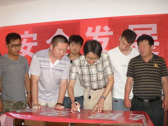 6月15日,十八分公司辦公室喜遷新地!在新辦公室內(nèi)由分公司經(jīng)理李震主持召開了六月份關于“安全發(fā)展,科學發(fā)展”主題會議,并組織分公司全體職工在宣傳條幅上進行了簽字。隨后去每個工地進行宣傳簽字。分公司緊扣安全活動的主題,希望通過這次安全文化教育活動的開展,讓安全理念更能深入人心,讓全體人員真正體會到安全的緊迫性和重要性,真正營造出施工現(xiàn)場安全管理的濃厚的氛圍。