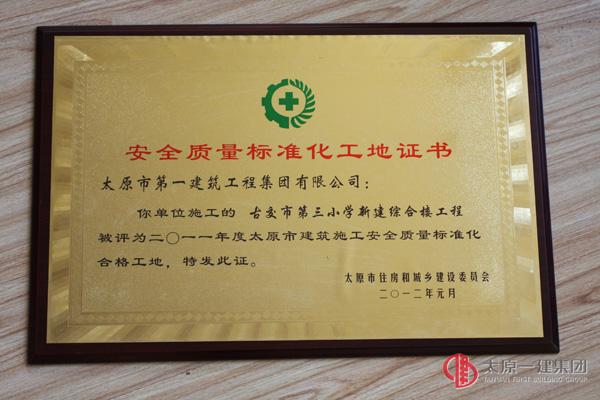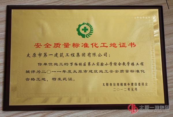 安全質(zhì)量標(biāo)準(zhǔn)化工地證書