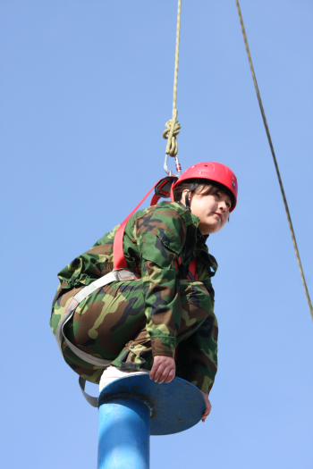 “空中抓杠”,使我們感覺到人的潛能是需要挖掘的,要創(chuàng)造條件,尋找機會,拓展訓(xùn)練的項目對人的體能的要求并不高,更多的是對人的心理的挑戰(zhàn),而且也會感悟到、體驗到它是一項讓每個人在心靈和精神上都有一個新的超越,重新認(rèn)識自己、認(rèn)識生命的活動,你會發(fā)現(xiàn)人的潛能真的是巨大的。這個訓(xùn)練項目告訴我們:挑戰(zhàn)自我,沒有不可能的事,不要輕易說“不”,要重新認(rèn)識自我,超越自我。