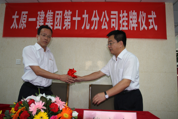 8月25日上午10時(shí),集團(tuán)公司十九分公司舉行揭牌授印儀式。集團(tuán)公司領(lǐng)導(dǎo)王貴聰、張岐泰、宋雙玉、司中謙、王斌、路志旭、趙晨輝、王建萍、劉潔、趙琦、李隆、范立強(qiáng)及機(jī)關(guān)各部門負(fù)責(zé)人,十九分公司全體領(lǐng)導(dǎo)及部分管理人員出席了揭牌儀式。集團(tuán)公司副總經(jīng)理趙琦主持儀式。人力資源部部長范立強(qiáng)宣讀對十九分公司的聘任決定;總經(jīng)理王貴聰向十九分公司經(jīng)理原扎根授印;王貴聰、原扎根分別在經(jīng)營目標(biāo)責(zé)任書上簽字;原扎根做表態(tài)講話:與太原一建集團(tuán)由相識相知到今天成為集團(tuán)公司這個(gè)大家庭的一個(gè)基層單位,由過去的游擊隊(duì)變?yōu)檎?guī)軍,我們感到非常的激動(dòng)和自豪。十九分公司站在了發(fā)展的新起點(diǎn),決心在今后的工作中,在集團(tuán)公司的正確領(lǐng)導(dǎo)下積極奮斗,盡職盡責(zé),干好事業(yè),圓滿完成集團(tuán)公司下達(dá)的各項(xiàng)指標(biāo)和交辦的各項(xiàng)任務(wù),為集團(tuán)公司重塑形象加快發(fā)展,做出十九分公司積極的貢獻(xiàn)。王貴聰作重要講話:首先,代表集團(tuán)公司祝賀十九分公司成立揭牌。太原一建集團(tuán)領(lǐng)導(dǎo)和全體員工真誠、熱情、熱烈地歡迎十九分公司的全體員工融入到集團(tuán)公司來,真正成為一家人一個(gè)團(tuán)隊(duì)。第二,希望十九分公司盡快融入集團(tuán)公司這個(gè)大家庭,從各個(gè)方面跟上集團(tuán)公司的整體發(fā)展步伐,同時(shí),集團(tuán)公司領(lǐng)導(dǎo)和各部門要對十九分公司的工作給予大力的幫助支持。第三,希望十九分公司要體現(xiàn)出特色,發(fā)揮好各種資源,在企業(yè)生產(chǎn)經(jīng)營、企業(yè)管理、市場開拓、重塑企業(yè)形象等各方面體現(xiàn)出十九分公司的優(yōu)勢和特點(diǎn),為集團(tuán)公司加快發(fā)展,重塑形象做出積極的貢獻(xiàn)。最后,王貴聰與原扎根在鞭炮聲、熱烈的掌聲中共同為集團(tuán)公司十九分公司揭牌,集團(tuán)公司領(lǐng)導(dǎo)與十九分公司領(lǐng)導(dǎo)合影留念。