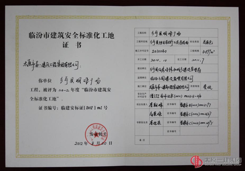 臨汾市建筑安全標(biāo)準(zhǔn)化工地-鄉(xiāng)寧縣明珠廣場(chǎng)工程