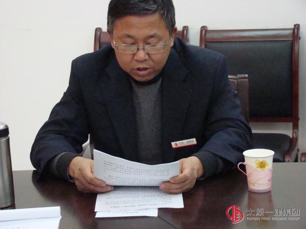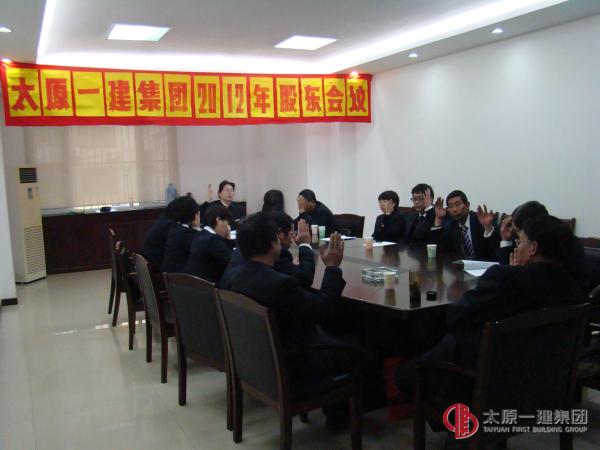 2013年1月13日第三工程處全體股東在會議室召開了2012年度股東會議。會議由李晉和同志宣讀了《關(guān)于召開2012年度股東大會的通知》,進(jìn)行了股東及股權(quán)的簽字確認(rèn),應(yīng)到股東14人,實(shí)到14人,符合公司法章程要求。劉永強(qiáng)同志宣讀了授權(quán)委托書。李晉和同志向全體股東匯報了集團(tuán)公司1.12股東預(yù)備會議的全部議程和內(nèi)容。