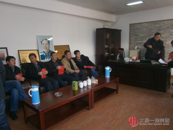 1月28日下午,二分公司召開(kāi)全體職工會(huì)議。分公司全體人員參加,會(huì)議由經(jīng)理孫慶福主持。首先,由分公司經(jīng)理孫慶福傳達(dá)學(xué)習(xí)了并一建發(fā)【2013】1號(hào)文件黨委書(shū)記董事長(zhǎng)王貴聰在“雙代會(huì)”上的重要講話(huà),強(qiáng)調(diào)了在新的三年規(guī)劃中,“四個(gè)發(fā)展”核心。其次,對(duì)項(xiàng)目部工作進(jìn)行總結(jié)安排,要求項(xiàng)目部處理好年終工程結(jié)算問(wèn)題,并為分公司19位股東發(fā)放了紅利。