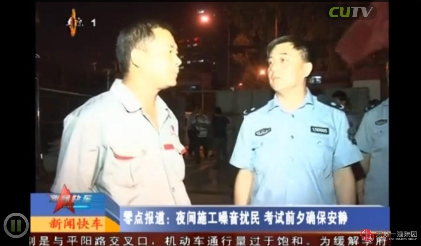 由于高考臨近,市政府要求太原市區(qū)內(nèi)所有工地禁止夜間施工。5月30日晚,根據(jù)有關(guān)規(guī)定,太原市執(zhí)法大隊(duì)第五大隊(duì)同太原市新聞快車欄目記者到七分公司財(cái)專項(xiàng)目部所處的前鋒南路沿岸,對周邊的幾處工地開展夜間檢查。檢查中對發(fā)現(xiàn)有違反規(guī)定的工地給予處罰,而對作為太原市十佳文明工地的我財(cái)專工地,給與表揚(yáng)電視宣傳。