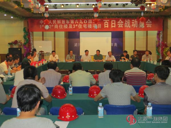7月1日,在中國共產(chǎn)黨建黨成立92周年之際,太原一建集團十三分公司6904工廠高層住宅樓項目部在中國人民解放軍第6904賓館三層會議廳隆重召開了“百日會戰(zhàn)動員會”。