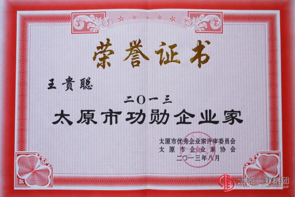 8月29日,太原市優(yōu)秀企業(yè)家評(píng)審委員會(huì)、太原市企業(yè)家協(xié)會(huì)召開第十四屆2013年太原市功勛企業(yè)家、杰出企業(yè)家、優(yōu)秀企業(yè)家表彰會(huì)議。集團(tuán)公司董事長總經(jīng)理王貴聰再度榮獲太原市功勛企業(yè)家稱號(hào)。