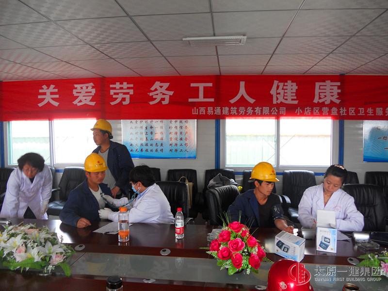 5月8日、9日,易通勞務(wù)公司聯(lián)系小店區(qū)營盤社區(qū)衛(wèi)生服務(wù)中心,到晉中開發(fā)區(qū)龍?zhí)锎宄侵写甯脑祉椖坎块_展了“關(guān)愛勞務(wù)工人健康”體檢活動,為255名農(nóng)民工免費(fèi)進(jìn)行了體檢和健康咨詢,并建立了健康檔案。本次體檢項目主要包括心肺、血壓、四肢、聽力等,體檢發(fā)現(xiàn)有26人患有不同程度的高血壓,6人有外傷,12人心率較快。勞務(wù)公司副經(jīng)理李志在體檢總結(jié)會上強(qiáng)調(diào)勞務(wù)人員身體健康直接影響著安全生產(chǎn),帶病工作就會帶來安全生產(chǎn)隱患,建議項目負(fù)責(zé)人加強(qiáng)日常安全監(jiān)管工作,關(guān)注工人身體狀況,特別是對體檢發(fā)現(xiàn)有高血壓、心肺功能不好等的農(nóng)民工,建議調(diào)離高空作業(yè)和體能消耗較大的崗位,同時積極創(chuàng)造條件,給農(nóng)民工提供良好的工作和生活場所。易通勞務(wù)公司堅持以人為本的管理理念,關(guān)心、關(guān)注一線作業(yè)勞務(wù)人員,落實現(xiàn)場勞務(wù)標(biāo)準(zhǔn)化建設(shè),以實際行動開展黨的群眾路線教育實踐活動,為龍?zhí)锎宄侵写甯脑祉椖看蟾?00天完成既定目標(biāo)奠定勞務(wù)基礎(chǔ)。