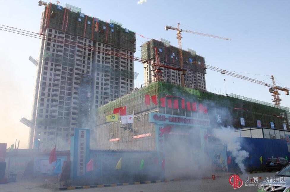 2014年12月10日上午10點10分,隨著最后一車混凝土澆筑的完成,集團公司龍?zhí)?ldquo;城中村”改造工程四標段15-1#、15-2#樓主體結構順利封頂。晉中經濟技術開發(fā)區(qū)管委會溫主任、趙書記、梁主任等及集團公司張岐泰副總、李偉副總、陳斌助理也參加了封頂儀式。管委會溫主任對龍?zhí)?ldquo;城中村”改造工程,無論是從質量、安全、進度各方面都給予了高度的評價。并代表晉中經濟技術開發(fā)區(qū)管委會和龍?zhí)锎迕駥ξ壹瘓F公司龍?zhí)镯椖坎勘硎局孕母兄x。