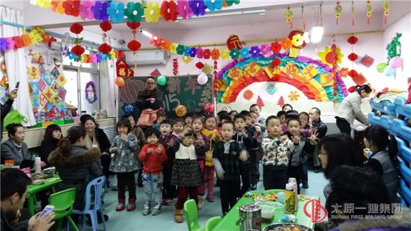 鑼鼓喧天歌盛世,山歡水笑慶佳節(jié)。伴隨著冬日溫暖的陽光,伴隨著即將敲響的新年鐘聲,幼兒園于2014年12月31日下午3:00在各班開展了一場(chǎng)“歡歡喜喜過新年”家園聯(lián)歡活動(dòng)。教室里張燈結(jié)彩,大門口紅燈籠高掛,整個(gè)幼兒園里洋溢著新年的熱鬧氣氛。