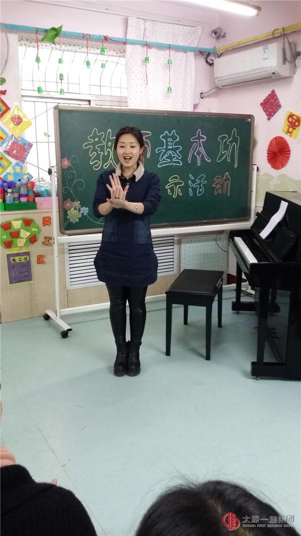 為加強(qiáng)我園師資隊伍建設(shè),提高教師專業(yè)素質(zhì),激勵教師重視和堅持基本功訓(xùn)練,我園在2015年1月16日舉行了全園教師基本功展示活動。本次活動通過對手指操、音樂律動、自彈自唱等平時教學(xué)活動中常用的一些基本技巧的展示,充分展現(xiàn)出作為一名幼兒園教師應(yīng)有的風(fēng)采。
