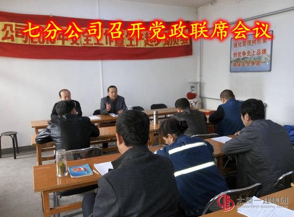 3月30日下午2:30,七分公司召開(kāi)黨政聯(lián)席會(huì)議,會(huì)議由分公司經(jīng)理郭建新主持,分公司副經(jīng)理、項(xiàng)目經(jīng)理、科長(zhǎng)等12人參加。