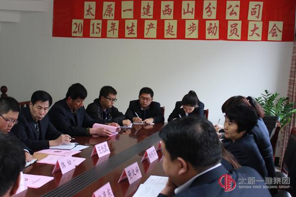 4月1日,西山分公司召開2015年生產起步動員推進會,參加會議的人員有集團公司副董事長西山分公司黨建指導員宋雙玉、分公司領導班子、全體管理人員,辦公室主任董文婷主持。