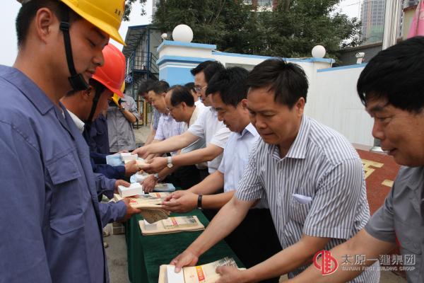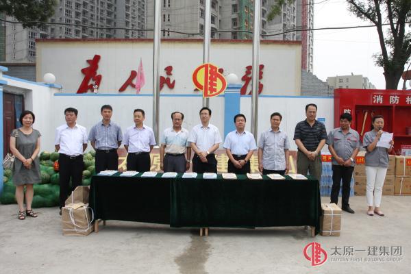 高溫酷暑,烈日炎炎,7月10日上午太原市總工會慰問農(nóng)民工活動在我分公司承建的田和食品集團制冷機房及預冷車間項目部舉行,太原市總工會常務副主席范曉高、宣教部部長鄒江等領導,帶著水果、綠豆、礦泉水、毛巾、洗衣粉等慰問品來到施工現(xiàn)場親切慰問了辛勤工作的廣大農(nóng)民工兄弟?;顒拥谝豁椨商锖晚椖坎考夹g負責人朱蕊對工程情況進行簡要的介紹。第二項由市總工會范主席為大家講話,他強調(diào)大家一定要注意防暑,認真學習職工維權手冊,并為大家送上問候和祝福。第三項由各位領導向大家發(fā)放慰問品。集團公司黨委書記董事長總經(jīng)理王貴聰、工會主席李瑞琪,建設單位田和食品集團公司書記王向兵、工會主席馮增喜、副總劉浩明,分公司領導班子全體成員及項目部全體員工參加了此次活動?;顒佑煞止竟飨卟视⒅鞒帧?/p>