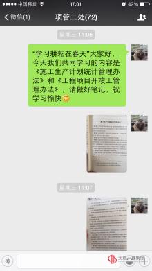 自集團(tuán)公司下發(fā)關(guān)于組織學(xué)習(xí)《企業(yè)規(guī)章制度》的通知后,項(xiàng)管二處認(rèn)真制定學(xué)習(xí)計(jì)劃,以工程處、工程部、項(xiàng)目部為學(xué)習(xí)單位,根據(jù)崗位側(cè)重不同,編制《企業(yè)規(guī)章制度學(xué)習(xí)重點(diǎn)目錄》進(jìn)行學(xué)習(xí)指導(dǎo),并繼續(xù)通過微信課的形式開展“碎片式”學(xué)習(xí)。