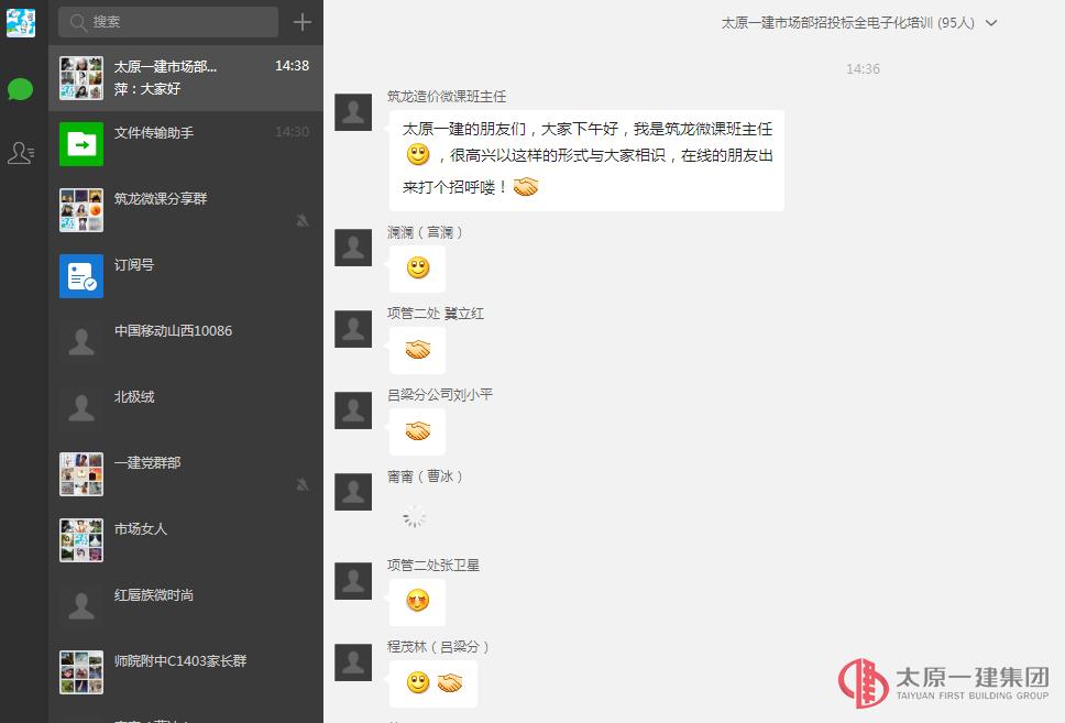 為了讓集團(tuán)公司從事投標(biāo)工作的人員熟練掌握全電子化投標(biāo)流程,市場(chǎng)開(kāi)發(fā)部邀請(qǐng)筑龍微課班主任于2016年05月13日下午三點(diǎn),針對(duì)全電子化投標(biāo)流程的操作專門為本公司開(kāi)設(shè)企業(yè)專場(chǎng)進(jìn)行線上培訓(xùn)。培訓(xùn)采取微信在線授課,隨時(shí)隨地能及時(shí)地聽(tīng)課。培訓(xùn)中,微課班主任授課專業(yè),聽(tīng)課人積極提問(wèn),老師耐心回答,及時(shí)的答疑解惑,為投標(biāo)人員今后能更好的參與投標(biāo)和熟練操作電子投標(biāo)系統(tǒng)提供了學(xué)習(xí)平臺(tái)。