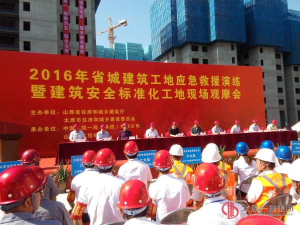 2016年6月22日上午8時,我直屬四分公司玉泉山居項目部相關(guān)管理人員在集團公司工程管理部李永平部長的帶領(lǐng)下,作為太原市應(yīng)急救援第九大隊的一份子,參加了山西省住房和城鄉(xiāng)建設(shè)廳以及太原市住建委聯(lián)合主辦,中國建筑一局(集團)有限公司和山西省工程機械廠聯(lián)合承辦的2016年省城建筑工地應(yīng)急救援演練暨建筑安全標準化工地萬科金域華府施工現(xiàn)場觀摩會。