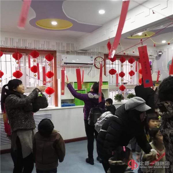 在悅耳歡快的音樂聲中,活動(dòng)徐徐拉開序幕!孩子們專心致志的觀看手偶劇“動(dòng)物村”,外教的禮物狂歡派對(duì)彰顯濃濃的節(jié)日氣氛,充滿環(huán)保意識(shí)與創(chuàng)新意識(shí)的魔幻T臺(tái)秀,親子共同合作剪出的美麗窗花,教練哥哥與米奇、喜羊羊的戶外游戲……深受家長(zhǎng)和幼兒的喜歡!整個(gè)活動(dòng)井然有序、熱鬧非凡。家長(zhǎng)與小朋友們的身影快樂地穿梭在各個(gè)主題活動(dòng)區(qū)域,自主的選擇各種妙趣橫生的游戲,其歡笑聲、喝彩聲,充滿了整個(gè)幼兒園!