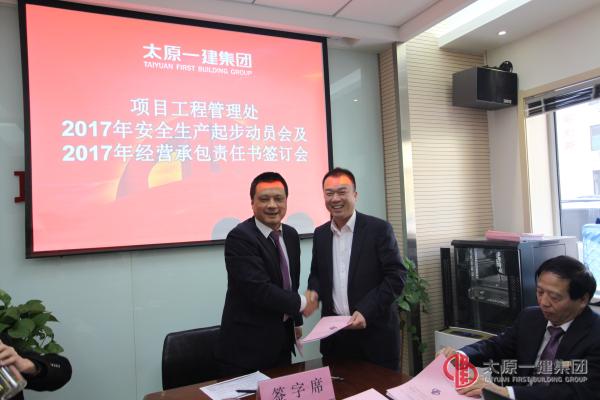 會(huì)議第一項(xiàng)由支部副書(shū)記李寶林宣讀了集團(tuán)公司有關(guān)任命文件;第二項(xiàng)由主任經(jīng)濟(jì)師、工會(huì)主席高榮珠宣讀集團(tuán)公司有關(guān)表彰決定;第三項(xiàng)由主任會(huì)計(jì)師孫天明通報(bào)2016年項(xiàng)管處經(jīng)營(yíng)指標(biāo)完成情況,并對(duì)2017年經(jīng)營(yíng)承包責(zé)任書(shū)做解釋說(shuō)明;第四項(xiàng)由處長(zhǎng)李朝峰同各項(xiàng)目部部長(zhǎng)簽訂經(jīng)營(yíng)承包責(zé)任書(shū);第五項(xiàng)由副處長(zhǎng)劉泰宏做項(xiàng)管處2017年安全生產(chǎn)起步動(dòng)員;第六項(xiàng)李朝峰結(jié)合3月4日集團(tuán)公司會(huì)議精神對(duì)我處2017年總體工作安排部署:項(xiàng)管處2017年主要工作措施為七個(gè)抓1、抓任務(wù)承攬,一定要承攬上一定規(guī)模的自建任務(wù);2、抓生產(chǎn)起步;3、抓學(xué)習(xí)提高,創(chuàng)建學(xué)習(xí)型團(tuán)隊(duì);4、抓質(zhì)量安全管理;5、抓企業(yè)家文化建設(shè)、堅(jiān)持對(duì)職工的關(guān)心、關(guān)愛(ài);6、抓青年人才的培養(yǎng)和鍛煉;7、抓落實(shí)和執(zhí)行力。第七項(xiàng)由集團(tuán)公司分管領(lǐng)導(dǎo)司中謙作指導(dǎo)講話:1、簡(jiǎn)單說(shuō)開(kāi)會(huì)的目的就是貫徹、落實(shí)、執(zhí)行;2、七個(gè)抓補(bǔ)充一點(diǎn)要有考核;3、管理過(guò)程中的成本核算,克服避免經(jīng)營(yíng)風(fēng)險(xiǎn);4、抓好內(nèi)業(yè)檔案資料工作;5、在經(jīng)營(yíng)紅線的原則上項(xiàng)管處決不能越雷池半步。最后集團(tuán)公司總經(jīng)理李世雄對(duì)項(xiàng)管處安全生產(chǎn)起步動(dòng)員做指導(dǎo):1、講好企業(yè)故事,用一家人的文化理念來(lái)打造一公司的團(tuán)隊(duì);2、弘揚(yáng)工匠精神,打造合格產(chǎn)品,提升我們團(tuán)隊(duì)的品質(zhì),優(yōu)化人員結(jié)構(gòu),走出去,請(qǐng)進(jìn)來(lái);3、希望項(xiàng)管處今后在人才的培養(yǎng)上要先優(yōu)化,再?gòu)?qiáng)化;最后希望項(xiàng)管處要站在集團(tuán)公司的上游,爭(zhēng)創(chuàng)集團(tuán)公司一流。