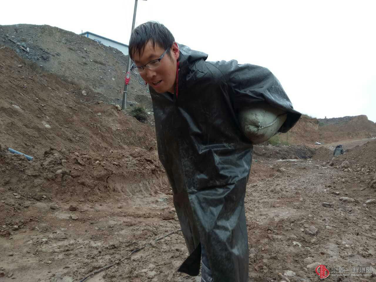 然而由于陽方口地處雁北高寒地區(qū),施工以來,明顯的大風天氣嚴重影響了施工進度;再加上突然的降雨導致坑槽土方不斷發(fā)生坍塌,使施工現場泥濘不堪,施工機械無法進入坑底,面對緊迫的工期、不利的條件,項目部全體管理人員發(fā)揚龍城人“敢打硬仗的精神、吃苦耐勞的斗志”,在采取一系列安全措施下,自我加壓、負重前行,連續(xù)奮戰(zhàn)幾晝夜,冒雨頂風作業(yè),克服了惡劣天氣帶來的重重阻力,保證不間斷施工,最終于5月3日提前完成甲方交代的任務!