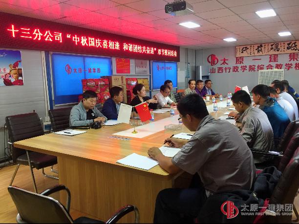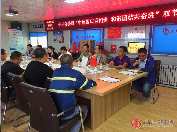 9月28日下午3時,十三分公司黨支部書記、經(jīng)理孟計(jì)根帶領(lǐng)分公司領(lǐng)導(dǎo)班子成員一行,在山西行政學(xué)院(山西省委黨校)項(xiàng)目部施工現(xiàn)場開展“中秋國慶喜相逢 和諧團(tuán)結(jié)共奮進(jìn)”為主題的雙節(jié)慰問活動。給項(xiàng)目送去10箱蘋果、50斤月餅及5000元的慰問金。集團(tuán)公司總經(jīng)理助理、工程管理部部長、十三分公司分管領(lǐng)導(dǎo)趙峰,項(xiàng)目部全體工作人員,勞務(wù)代表及專業(yè)分包單位代表共同參加活動。十三分公司黨支部副書記,工會主席任偉娟主持了活動。此次慰問活動不僅讓長期作業(yè)在施工現(xiàn)場的人員感受到了節(jié)日的氣氛,而且再現(xiàn)了黨群一家親的和諧局面,更以實(shí)際行動踐行了集團(tuán)公司“以人為本”的企業(yè)家文化理念,也充分體現(xiàn)了十三分公司對項(xiàng)目部員工和農(nóng)民工兄弟的關(guān)心、愛護(hù),是分公司建設(shè)“一家人”企業(yè)文化的重要體現(xiàn)。為十三分公司全面完成2017年各項(xiàng)奮斗目標(biāo)發(fā)揮了加油鼓勁的作用。