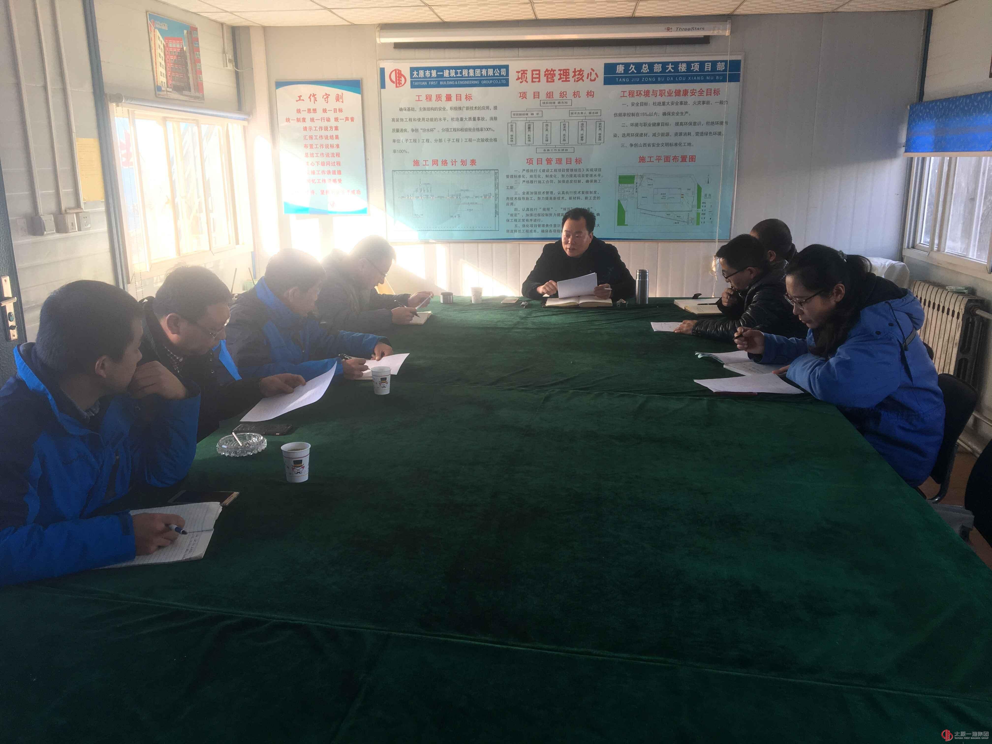 11月24日上午,直屬分公司唐久總部大樓項目建設單位、監(jiān)理單位及項目部相關人員齊聚會議室,對2017年度本項目遺留及待解決的問題進行溝通。與會人員有:建設單位總經(jīng)理程振晉、現(xiàn)場負責人張德發(fā);監(jiān)理單位總監(jiān)代表溫良良;唐久總部大樓項目經(jīng)理霍建及各專業(yè)負責人等。