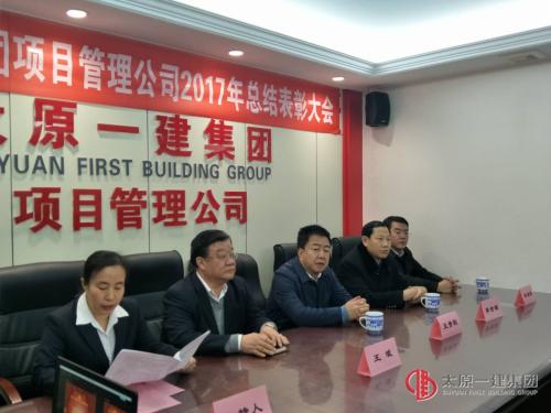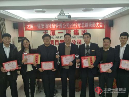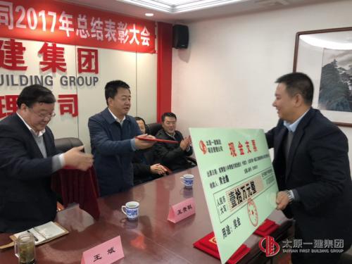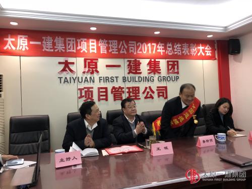 集團(tuán)公司領(lǐng)導(dǎo)和項(xiàng)目管理公司總經(jīng)理王斌共同為2017年度表現(xiàn)突出的五個(gè)先進(jìn)集體、十一個(gè)先進(jìn)個(gè)人頒發(fā)了獎(jiǎng)杯、證書和獎(jiǎng)品,王貴聰董事長(zhǎng)為項(xiàng)目管理公司2017年度特別貢獻(xiàn)獎(jiǎng)獲得者黃金鑫頒發(fā)證書和獎(jiǎng)金拾萬元。