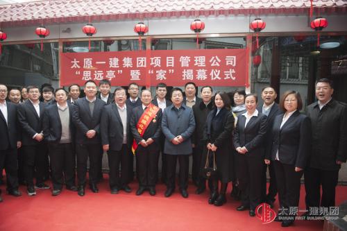 10時(shí)48分,在熱烈、喜慶的氣氛中集團(tuán)公司領(lǐng)導(dǎo)王貴聰、李世雄為項(xiàng)目管理公司“思遠(yuǎn)亭”揭幕,集團(tuán)公司領(lǐng)導(dǎo)李瑞琪和道德模范魯際明為具有創(chuàng)意的“家”徽揭幕。儀式由總會(huì)計(jì)師彭臘仙主持。